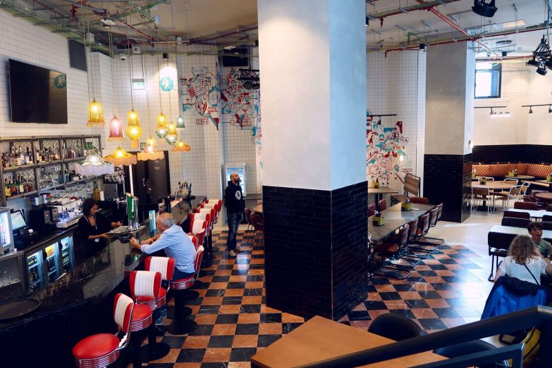 The hostel bar, which is only accessible via the reception next door, is also very large… and completely soulless. There was never more than five people in there at any time of the evening and the general vibe was pretty lame. The space itself is amazing but was clearly intended as a restaurant originally but now feels completely underutilised. Perhaps it was the fact that it was always so brightly lit, or playing terrible music (Robbie Williams’ greatest hits anyone?) or the fact that there was no happy hour advertised? Either way, everyone staying here seemed to avoid the bar entirely.